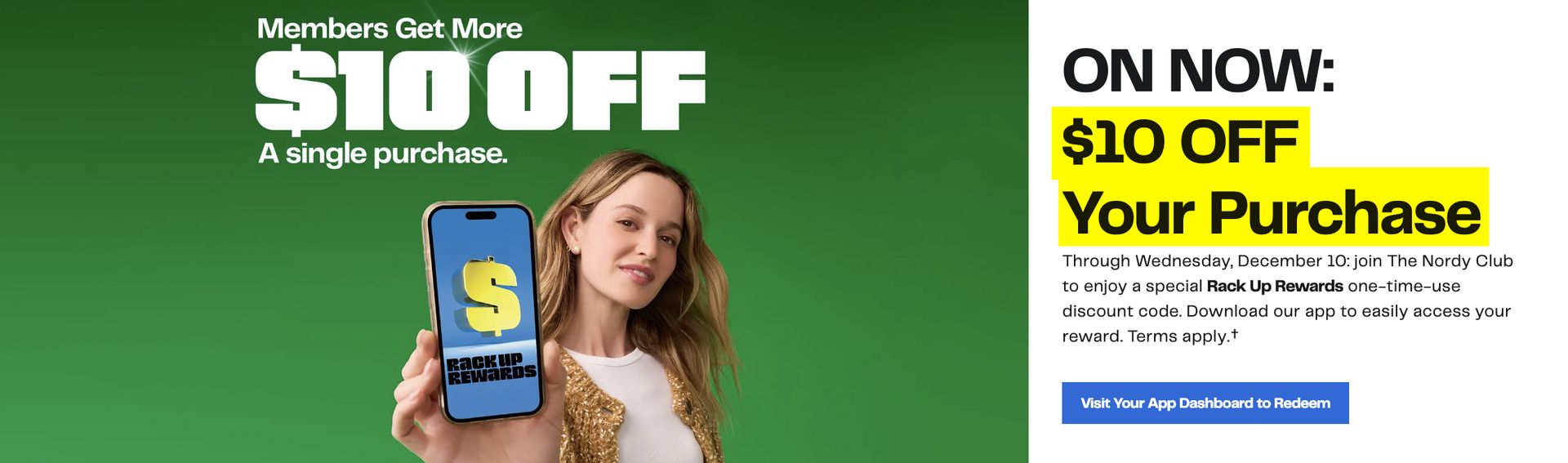 💵 Free $10 OFF at Nordstram Rack: Until this Wednesday (December 10) new and existing members of the free to join “Nordy Club reward program” will score a one time use $10 discount code that you can use toward any Nordstrom Rack online purchase until 10:59pm PT December 10th. A minimum $10.01 purchase is required.