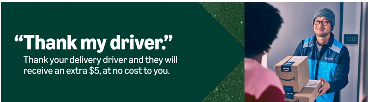 If you don’t have an echo or a smart phone, you can type “thank my driver” into the Amazon Search Bar. This applies to all deliveries in the U.S. within 14 days of receipt.