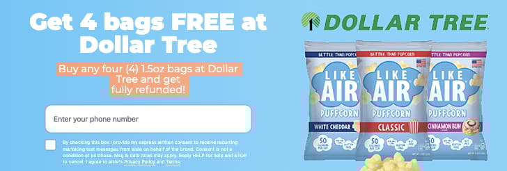 šæ 4 Free Popcorn Bags at Dollar Tree: This is one of my favorite freebies of the week provided you like āLike Air Popcornā and donāt mind waiting for a rebate.