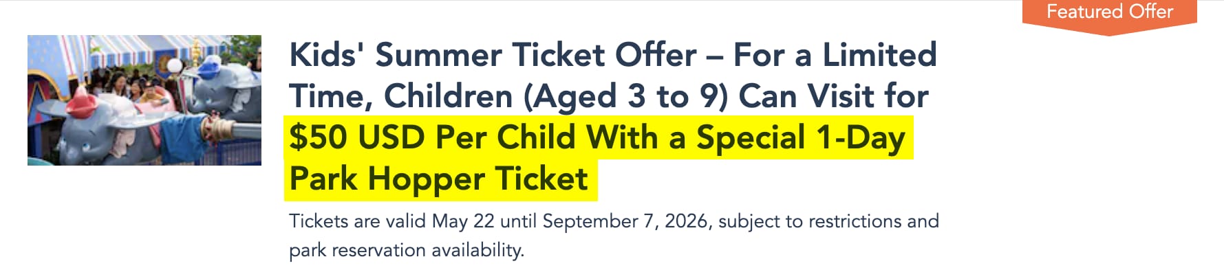 A typical child ticket usually costs $120 - $170 per day depending on the date, so this deal can save roughly $70 to $100 per child per day, or $200+ per kid on a 3-day trip which is substantial!