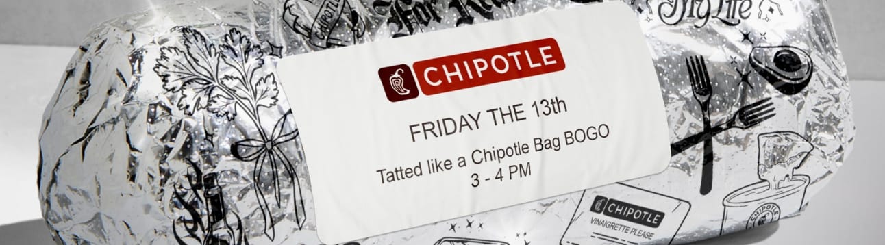 You must show a tattoo inspired by the Chipotle bag design, although it can be temporary or drawn on.