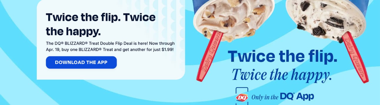 🍦 Dairy Queen 99¢ Blizzard BOGO: Buy one Blizzard and get a second for $0.99 through April 29 when ordering through the app. This is one of the better food deals right now if you are taking advantage of warmer weather.
